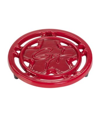 Trivets. Get cooking with one of your favorite Food Network stars, Guy Fieri. This classic trivet brings bold style to your kitchen and is a perfect accompaniment to the Guy Fieri cookware collection. 8" diameter red trivet Cast iron construction Red porcelain enamel This trivet is designed for elevating hot cookware, protecting countertops, table linens and other surfaces. Handwash only Style #5099846 Imported Read more