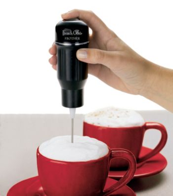 Frothers. Web exclusive! Be your own personal barista with this fabulous turbo milk frother A French Cafe Caffe Froth turbo milk frother would make an excellent addition to your kitchen accessories. It froths milk in seconds and features a quick-touch soft button design and comfortable easy grip body. No need to pay high prices for your lattes, cappuccinos or mocha coffees anymore - you can make them right in your own kitchen! This turbo milk frother would also be great for making dessert toppings too, and you ll love the convenient countertop storage stand. 3 H x 3 W … Read more