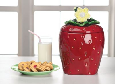 Pick this decorative strawberry cookie jar for storing treats in easy reach on your countertop. Colorful glazed ceramic Embossed accents Stayfresh gaskets8"W x 10"H Read more